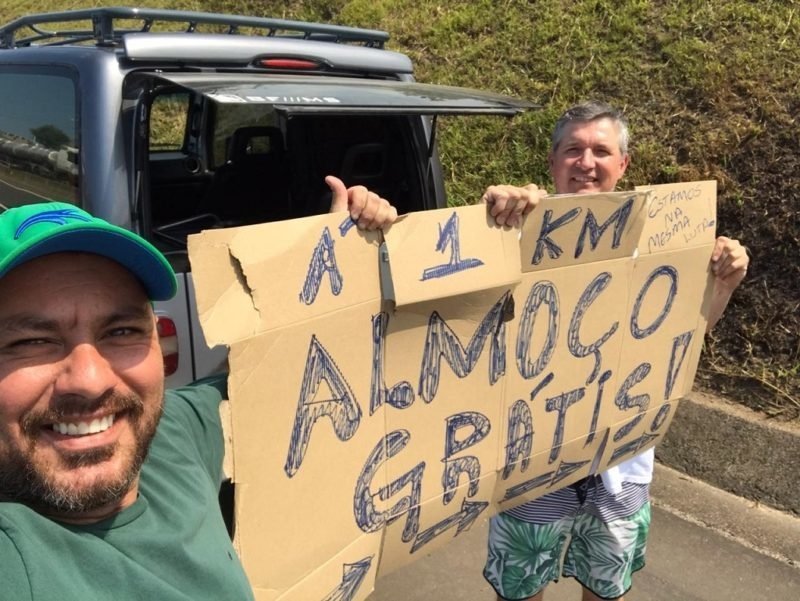 O Jornal Volta Grande, de Sombrio, fez o registro de José Artur Pereira, que trabalha no ramo alimentício.Ele ficou à beira da BR 101 segurando uma placa improvisada onde indicava “comida grátis a 1 km”, para distribuir aos caminhoneiros.