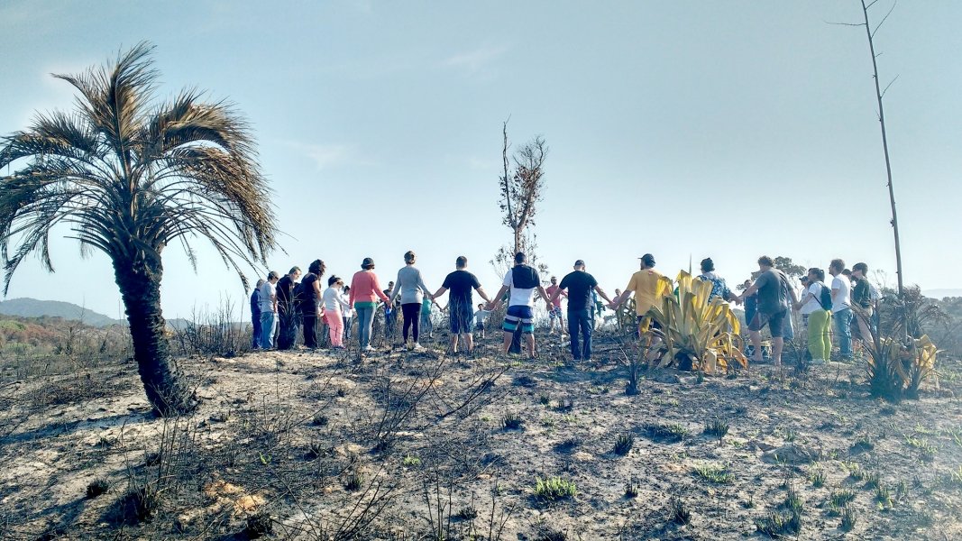 Assim foi a experiência vivenciada por mais de 60 pessoas que participam de uma grande ação em prol da preservação da área verde conhecida como Areais da Ribanceira, em Imbituba, onde as terras são alvo de disputa entre empresários, especuladores, ecologistas e moradores. Na última semana, diversas entidades realizaram a “Caminhada e Abraço aos Areais da Ribanceira” em função de constantes queimadas que provocaram a morte de animais e migração de aves. O fogo ainda atingiu o complexo de butiazais e todo seu ecossistema.