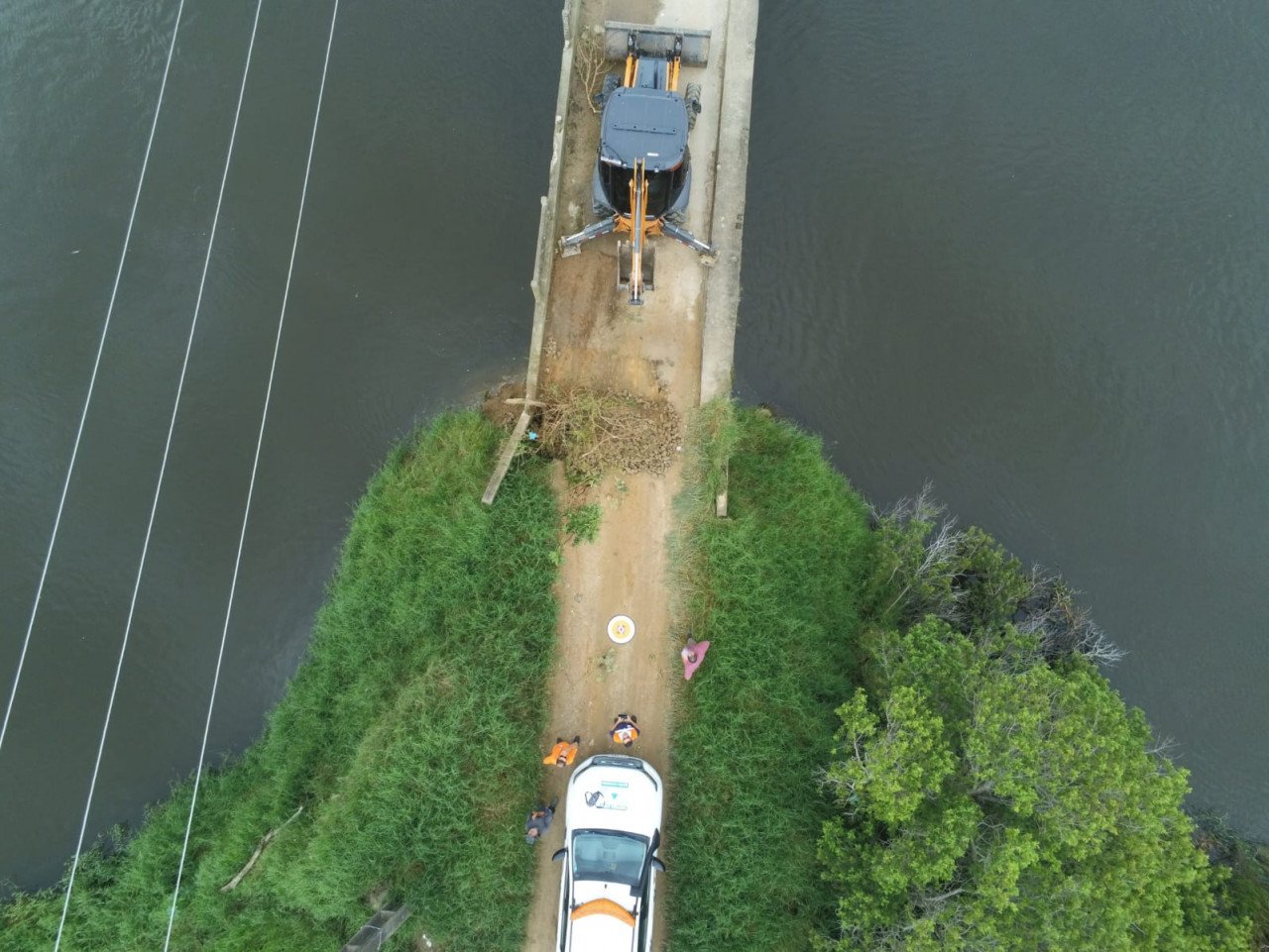 #PraCegoVer Na foto, uma máquina faz uma barreira para interditar uma ponte
