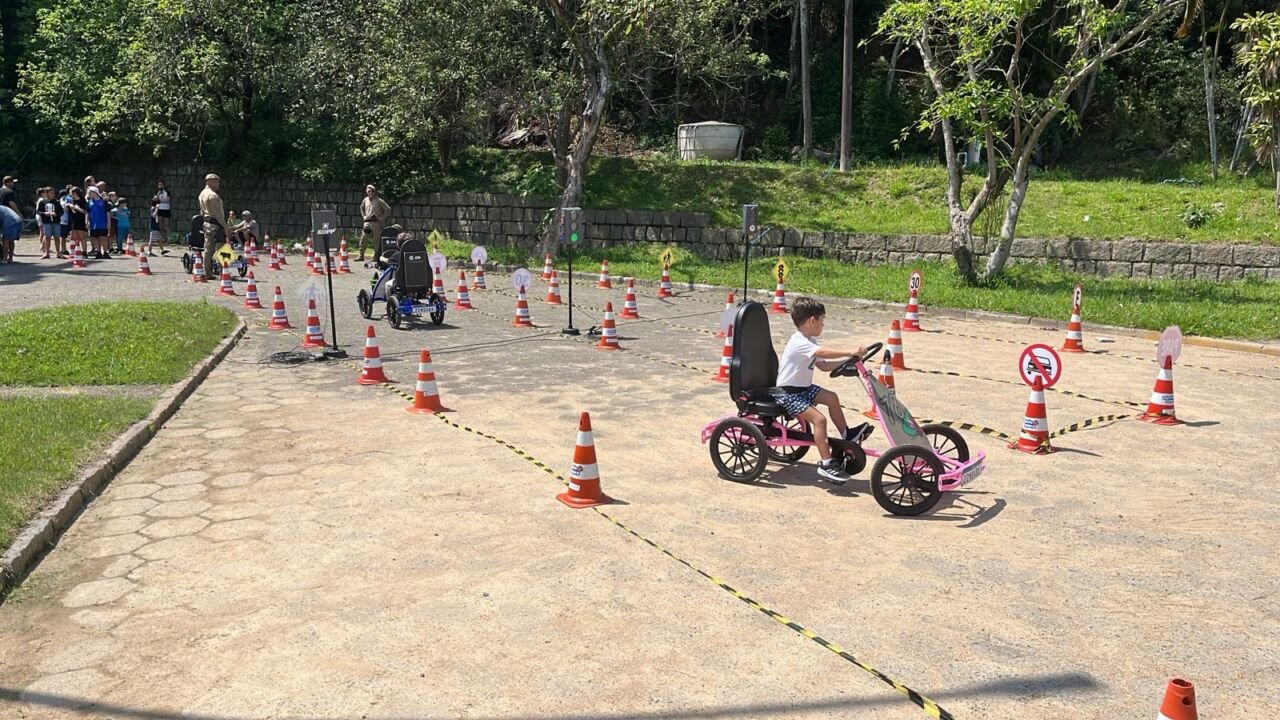 A Escolinha de Trânsito da Polícia Militar foi uma das atrações mais procuradas pelas famílias. As crianças puderam dirigir carrinhos de brinquedo entre cones, aprendendo de forma lúdica sobre sinalização, respeito às leis de trânsito e segurança viária.