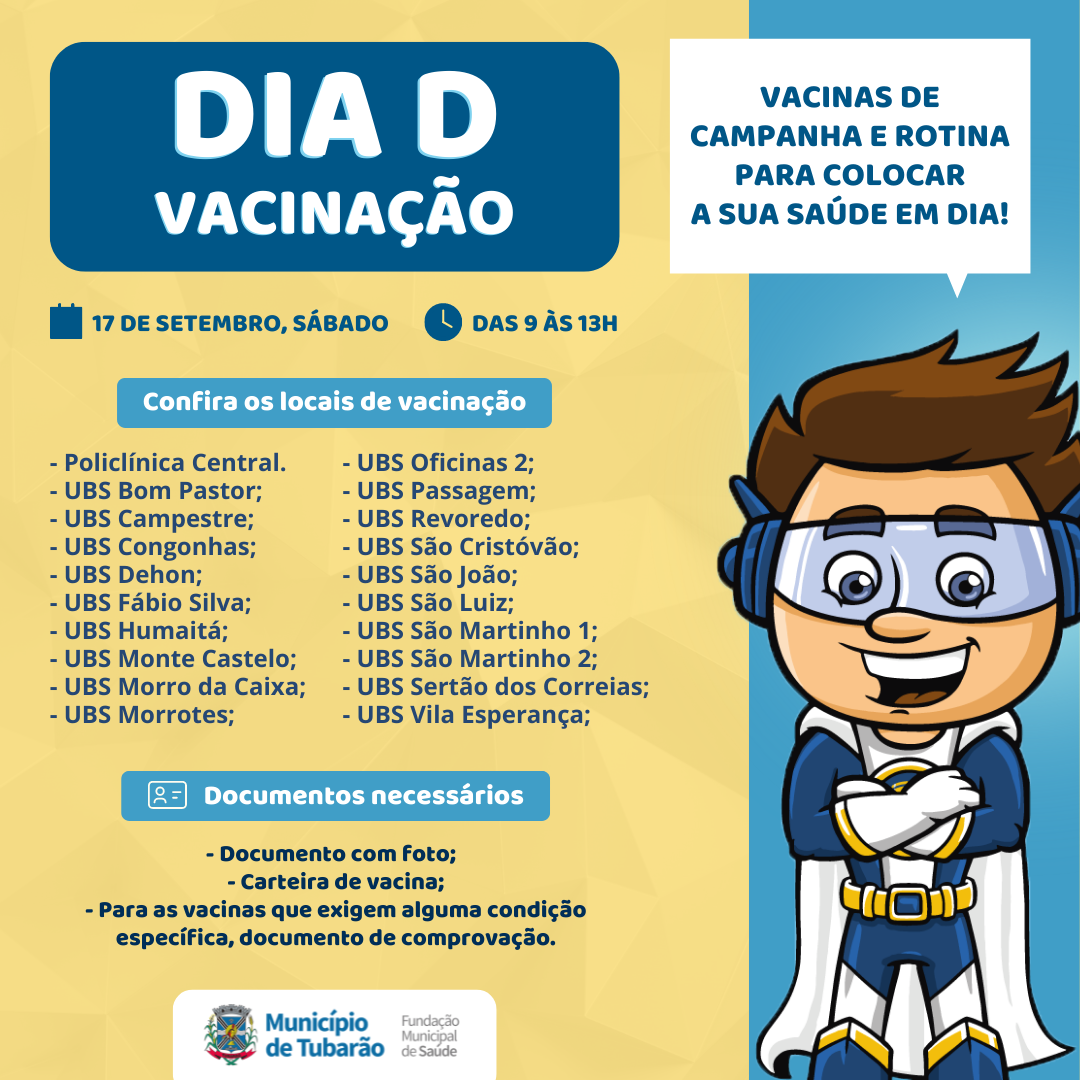 Guto Nuernberg, vice-presidente do Grupo GAM, de Tubarão, gravou um vídeo alertando a população tubaronense sobre o risco da doença. Guto contraiu o vírus na infância, com 2 anos de idade, e convive com a paralisia durante a vida inteira. Você pode conferir a lista das salas de vacinas e os horários de atendimento clicando aqui e o cronograma do ônibus “Saúde Mais Perto de Você” aqui.