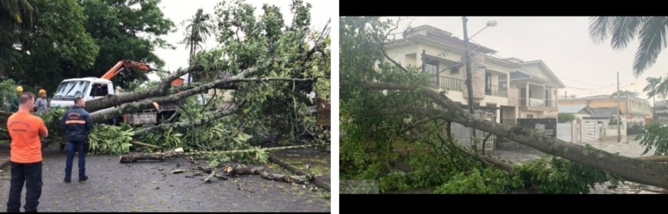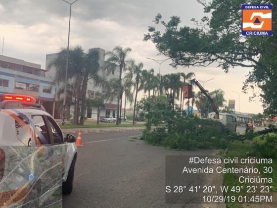 Em Criciúma, a Defesa Civil e o Corpo de Bombeiros estão atendendo um caso de queda de um coqueiro em cima de uma residência, no bairro Pinheirinho. Além disso, já foram atendidas também ocorrências de árvores que tombaram na Avenida Centenário, no bairro Pinheirinho, e na Rua Gerônimo Coelho, no bairro Santa Bárbara.
