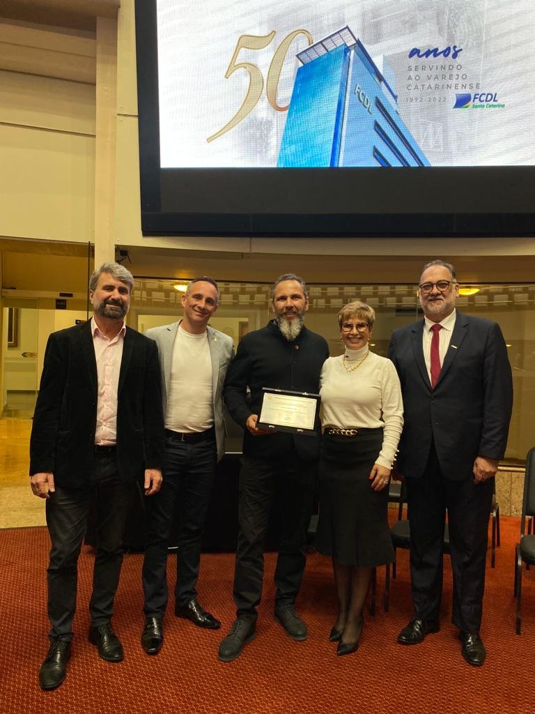 “Foi uma homenagem mais que merecida. Seu Lindomar Tournier fez muito pelo comércio varejista. Temos muito orgulho de sua trajetória”, destaca o vice-presidente da CDL, Fernando Nandi, que participou da sessão acompanhado do diretor executivo Felipe Nascimento e dos conselheiros Eliane Fernandes e Walmor Jung, vice-presidente de Assuntos Públicos e Políticos da FCDL.