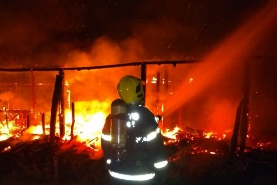 Um galpão desativado foi destruído por um incêndio em Tubarão. O caso foi registrado na noite desse sábado (4), às 23 horas, na SC-390.