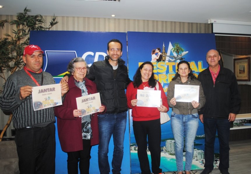 Parte dos ganhadores da promoção “Festival de Prêmios Tubarão” compareceu à Câmara de Dirigentes Lojistas (CDL) ontem para receber os prêmios do sorteio feito um dia antes. O grupo foi contemplado com dez jantares para casal no Restaurante Seven’s e no Hotel Sandrini, além de outros cinco consumidores que levaram vale-compras no valor de R$ 250.