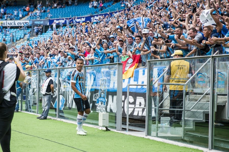 O Grêmio entrou em campo na tarde de ontem, na Arena, para disputar o primeiro jogo da final do Campeonato Gaúcho. Diante de mais de 32 mil torcedores, o Tricolor enfrentou o Brasil de Pelotas e venceu pelo placar de 4 x 0.