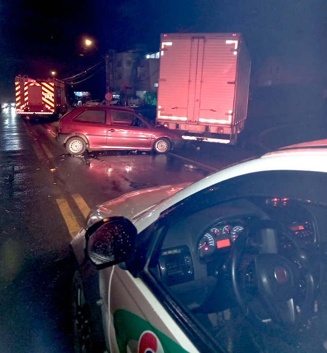Uma colisão entre um caminhão baú e um VW Gol foi registrada na noite desta sexta-feira (17), por volta das 19 horas, na SC-370, no bairro Termas, em Gravatal. A condutora do veículo, uma gestante de oito meses, apresentava dores no abdômen em virtude do acidente. Quando a guarnição chegou, a mulher, de 25 anos, já estava fora do veículo, com sinais vitais estáveis e sem ferimentos aparentes.