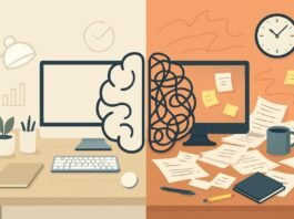 Aliás, se você quiser, pesquise um experimento publicado em um artigo de 2011 conduzido pelos neurocientistas Gigerenzer e Gaissmaier. Eles mostram como a organização visual influencia diretamente no nosso desempenho e a clareza mental.