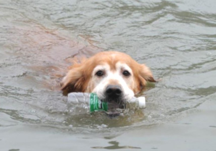 Um cão tira o lixo de um rio, mostrando que todos nós podemos fazer a diferença para salvar o planeta. O Golden Retriever leva de 20 a 30 garrafas do Wusong River, um rio que passa pelo centro da cidade de Xangai, na China.