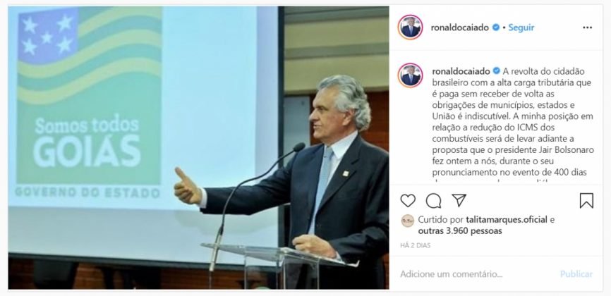 A declaração de Caiado segue na contramão de muitos governos. Caiado usou as redes sociais para fazer a declaração. Ele disse que a população está ‘revoltada’ por não enxergarem resultados nos impostos que pagam.