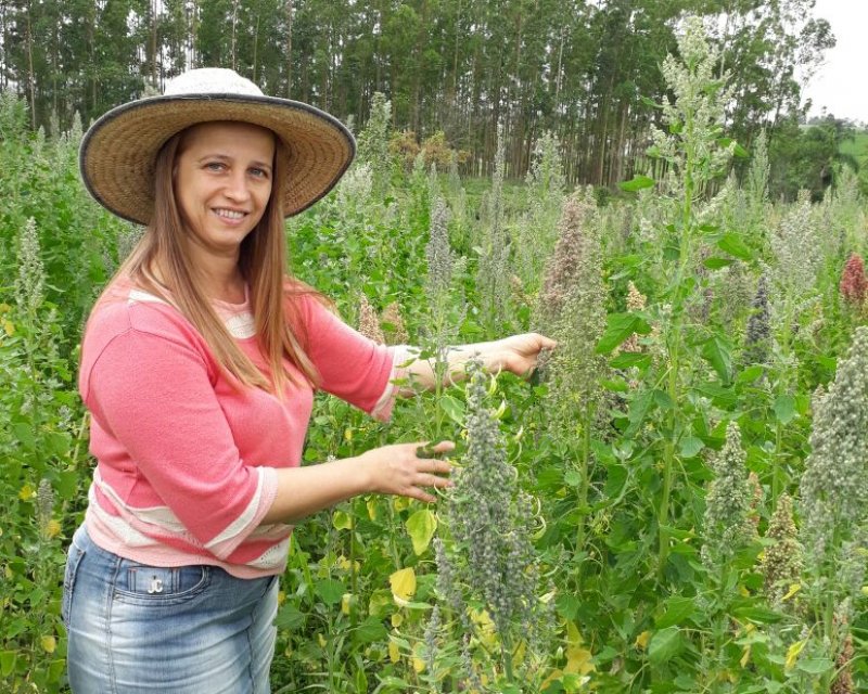 Jucélia Mateus, 51 anos, é cabeleireira e há algum tempo comprou um sítio em Treze de Maio. Preocupada com a saúde e em manter uma vida saudável, há oito anos ela iniciou os estudos dos benefícios da quinoa e procurou formas de produzi-la para o mercado. Após inúmeros levantamentos, teve acesso à semente que veio do Peru e investiu na plantação 100% orgânica.