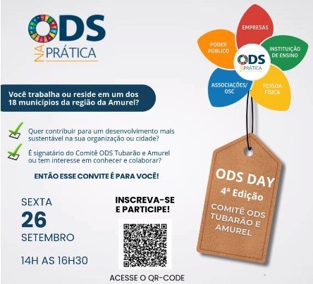 Promovido pelo Movimento ODS SC – Comitê de Tubarão e Amurel, com apoio da Prefeitura de Gravatal, o encontro é direcionado a cidadãos e profissionais dos 18 municípios da região da Amurel que buscam contribuir para um futuro mais sustentável.