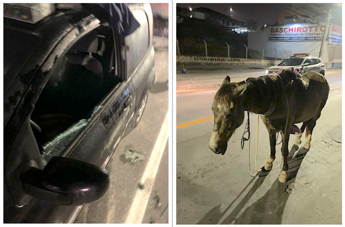 Populares que ouviram um barulho na Rua General Osvaldo Pinto da Veiga, no bairro Próspera, em Criciúma, por volta da 1h50min desta quarta-feira (27), acionaram a Polícia Militar após perceberem que um homem, com um cavalo, furtava um veículo. A guarnição chegou rapidamente e flagrou o momento em que o suspeito se preparava para montar no cavalo e para ir embora galopando com a bateria e o aparelho de somado Fiat Uno Vivace.