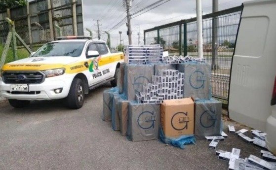 Uma apreensão de 21 mil maços de cigarros contrabandeados do Paraguai foi efetuada neste sábado (14), na BR 101 em Itajaí. Um homem foi preso. A ação foi realizada por policiais rodoviários federais (PRF) e policiais militares rodoviários (PMRv).