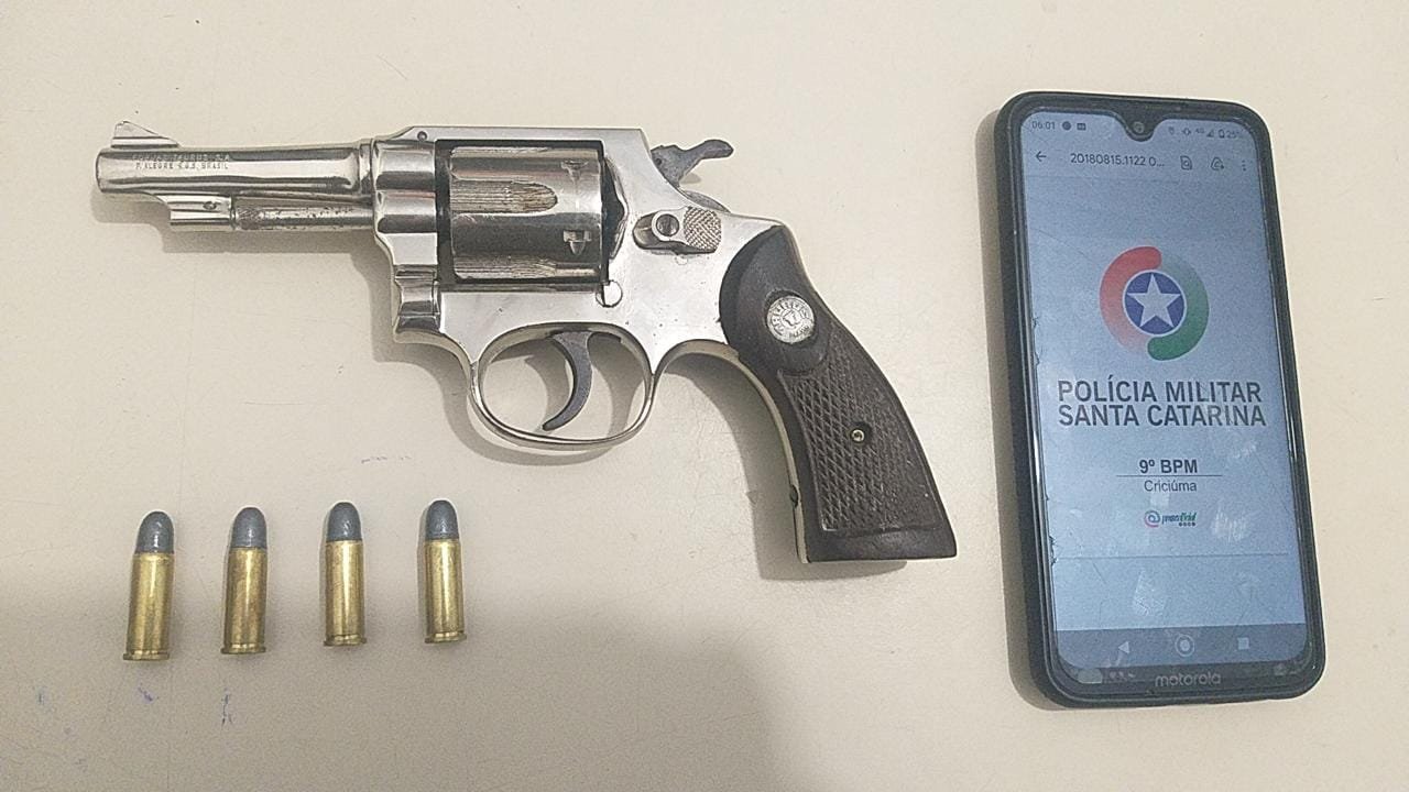 O revólver de calibre 32 estava em posse de um homem, que declarou que estava armado após ter a sua vida ameaçada por membros de uma facção criminosa. As guarnições faziam ronda pelo bairro quando avistaram um veículo GM Celta, com placas de Criciúma, em atitude suspeita.