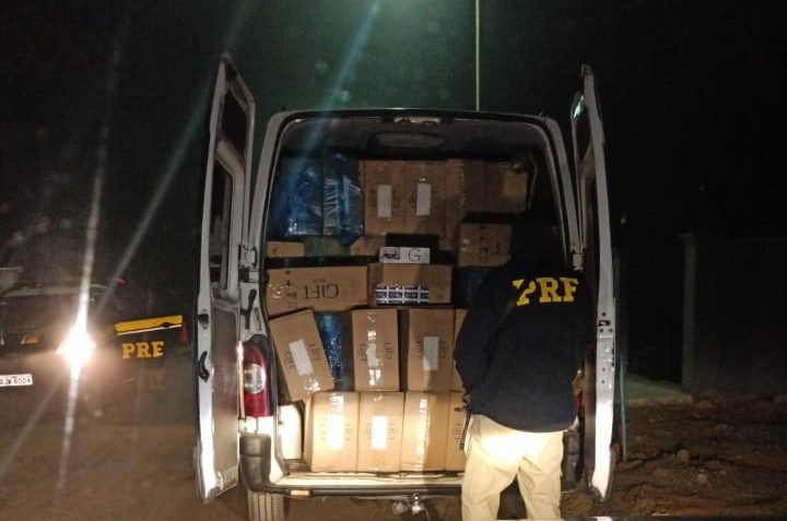 A mercadoria foi encontrada durante fiscalização a um furgão Renault/Master placas de Itaiópolis/SC. O compartimento de carga estava lotado de caixas com o produto paraguaio, de importação proibida.