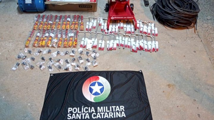 Além disso,21 chaves canhão, 31 chaves cachimbo, 30 adaptadores de chave soquete, 25 lâmpadas, dois motores novos e fios de energia elétrica separados em rolos foram encontrados no local. O autor foi encaminhado à Delegacia de Polícia Civil.