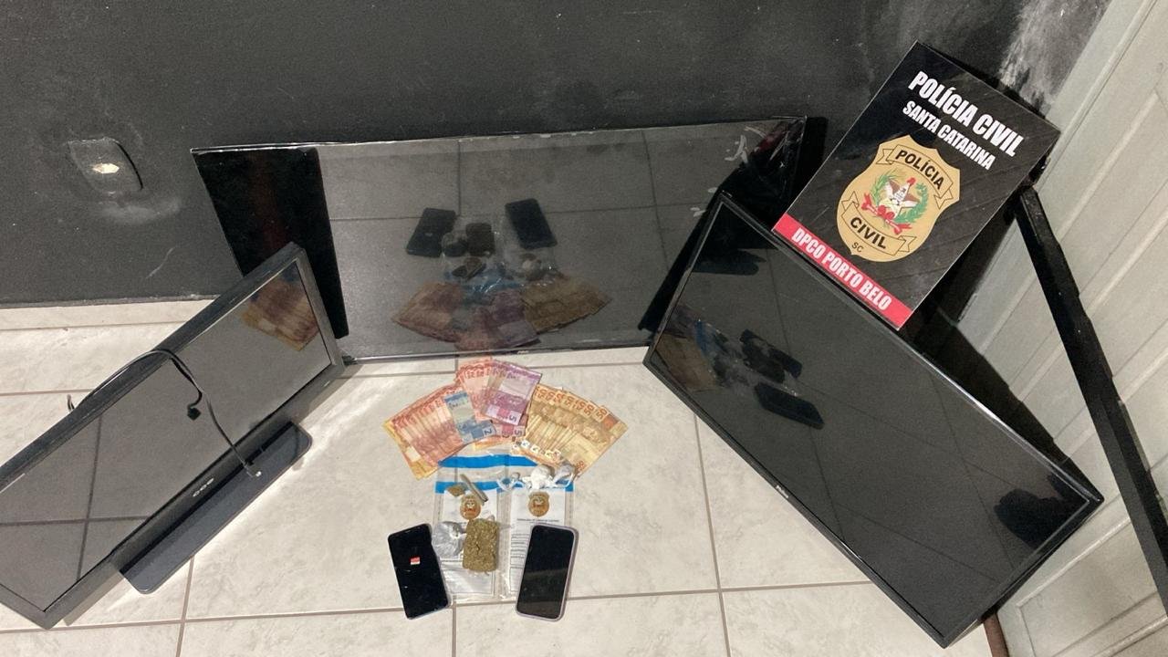 Também foram localizados televisores e aparelhos celulares, cuja origem não foi comprovada. Segundo relato do próprio suspeito, parte dos objetos teria sido recebida em troca de entorpecentes.