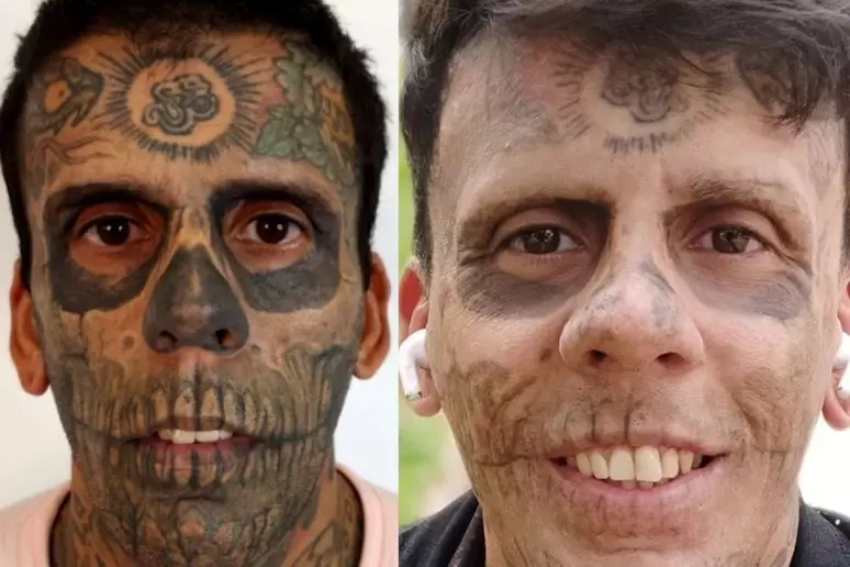 Leandro de Souza, de 35 anos, que tinha 95% do corpo coberto por mais de 170 tatuagens, decidiu remover todos os desenhos após sua conversão religiosa. Leandro, que começou a se tatuar aos 13 anos inspirado por bandas de rock e que, ao longo dos anos, também lutou contra o uso de drogas, agora compartilha sua jornada de transformação nas redes sociais, incluindo o doloroso processo de remoção das tatuagens a laser.