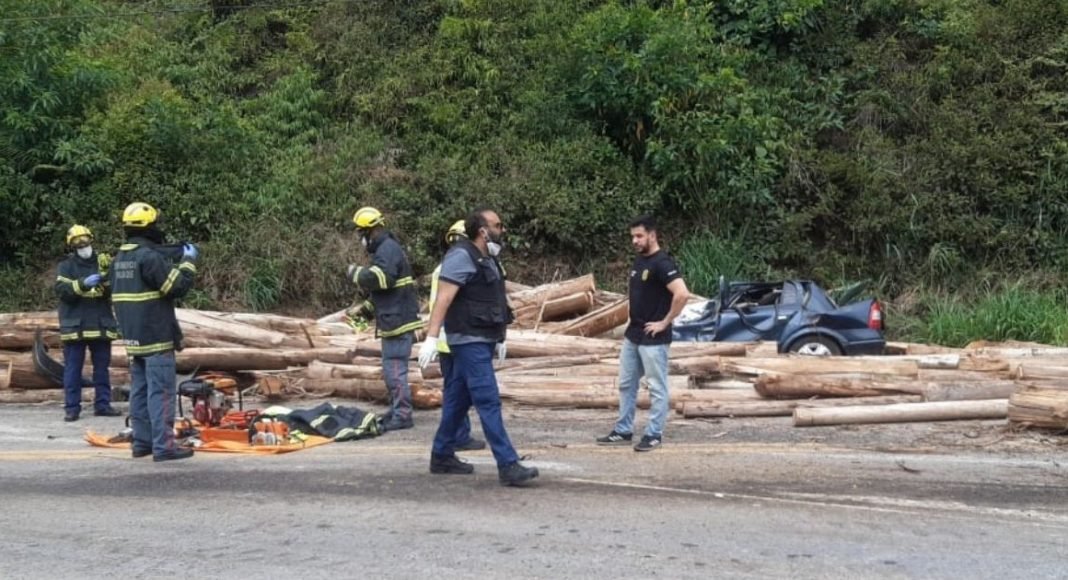 Um homem morreu na tarde desta quarta-feira, após uma carga de madeira cair de um caminhão na rodovia Ivo Silveira, no bairro Volta Grande, em Brusque. Ele ficou preso nas ferragens do veículo Chevrolet Astra.