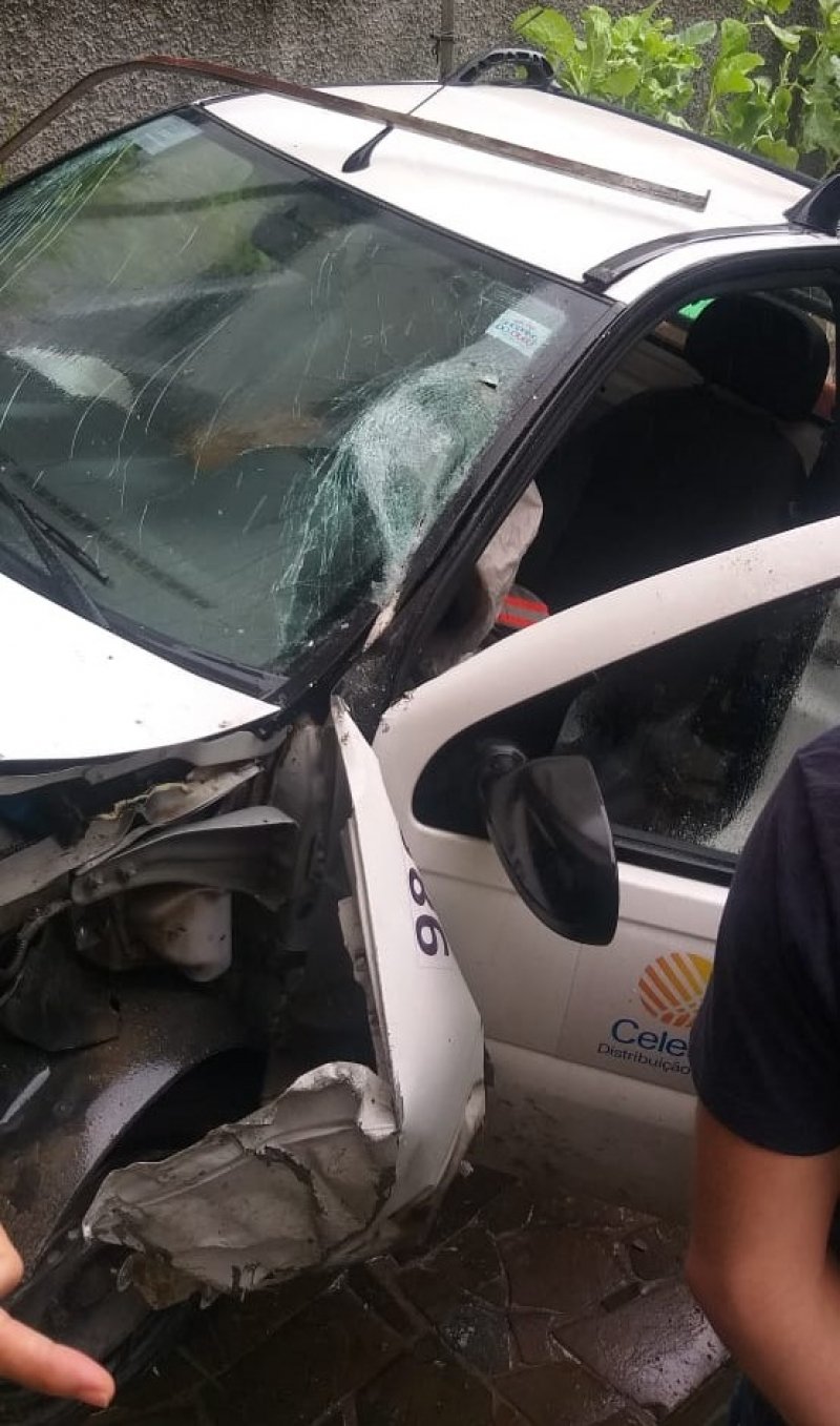 O veículo que o homem dirigia tinha adesivos da Celesc e o motorista estava visivelmente embriagado, dizem testemunhas. A Polícia Militar foi acionada.
