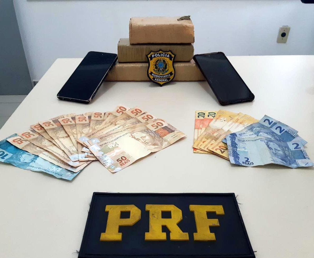 Policiais rodoviários federais prenderam na noite de quarta (5), na BR-101 em Paulo Lopes, dois homens com um quilo de maconha. Eles ocupavam um Renault/Clio, que parou repentinamente no pátio de um posto de combustíveis ao avistarem a viatura.