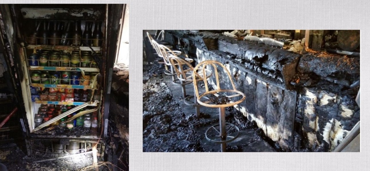 No primeiro e segundo pavimento, a fuligem se estendeu do teto ao piso, fazendo com que a fumaça entrasse nos cômodos pelas frestas das portas. As chamas acabaram concentradas somente no pavimento térreo, nas áreas da lanchonete e escadas. O calor liberado e transportado pela convecção dos gases, resultou em derretimento das luminárias de emergência e placas de sinalização de abandono de local do primeiro pavimento.