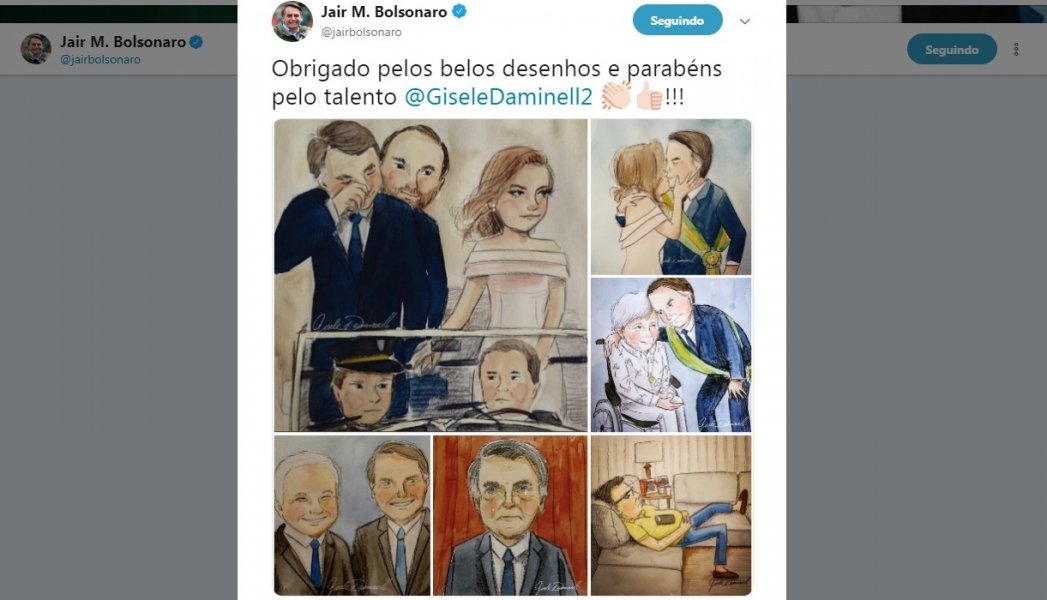 Ainda ontem, em seu perfil no Twitter, Bolsonaro publicou as fotos e agradeceu a homenagem. “Obrigado pelos belos desenhos e parabéns pelo talento”, afirmou.