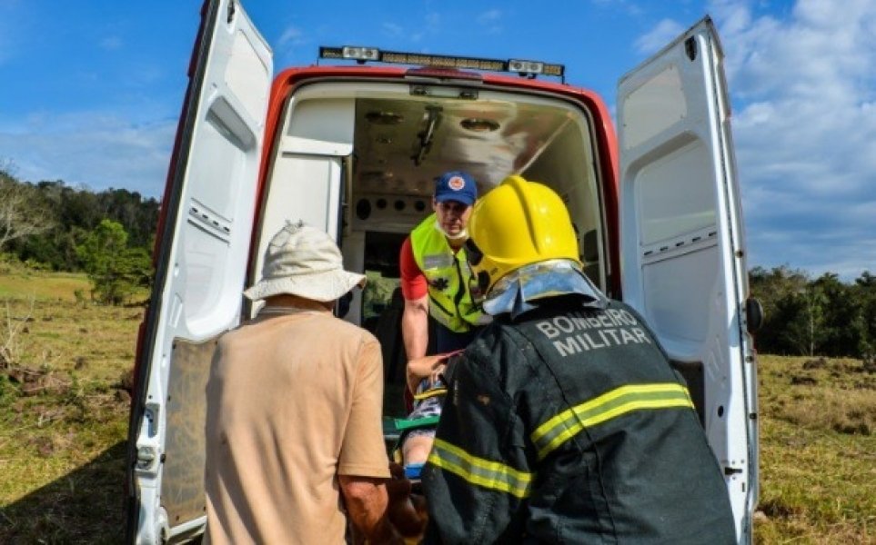 Segundo um familiar, o casal transportava silagem quando a senhora tropeçou em um arame e caiu embaixo do veículo. A vítima disse estar com dores na lombar, sendo imobilizada e socorrida pelos profissionais.