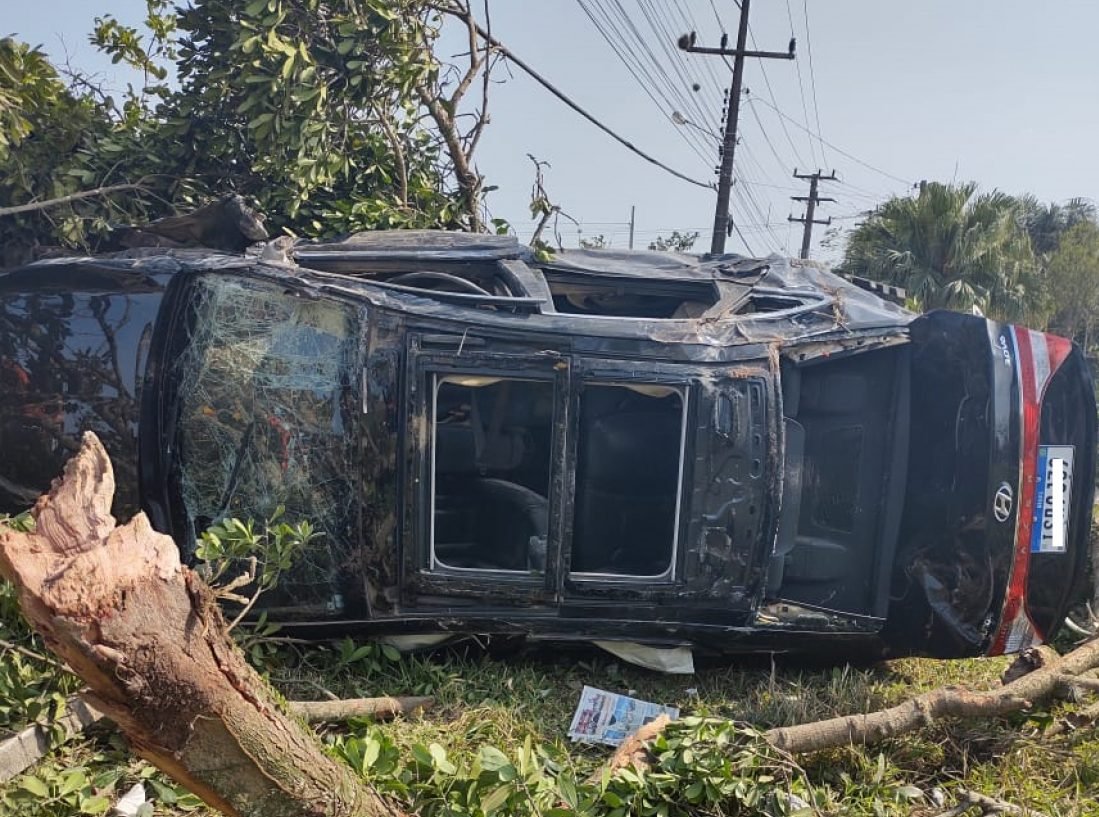 De acordo com informações, o condutor de um Azera perdeu o controle do veículo e bateu na mureta central da rodovia. Depois, o carro saiu da pista, cruzou a rodovia marginal e bateu no portão de uma casa e em árvores, capotando por diversas vezes.