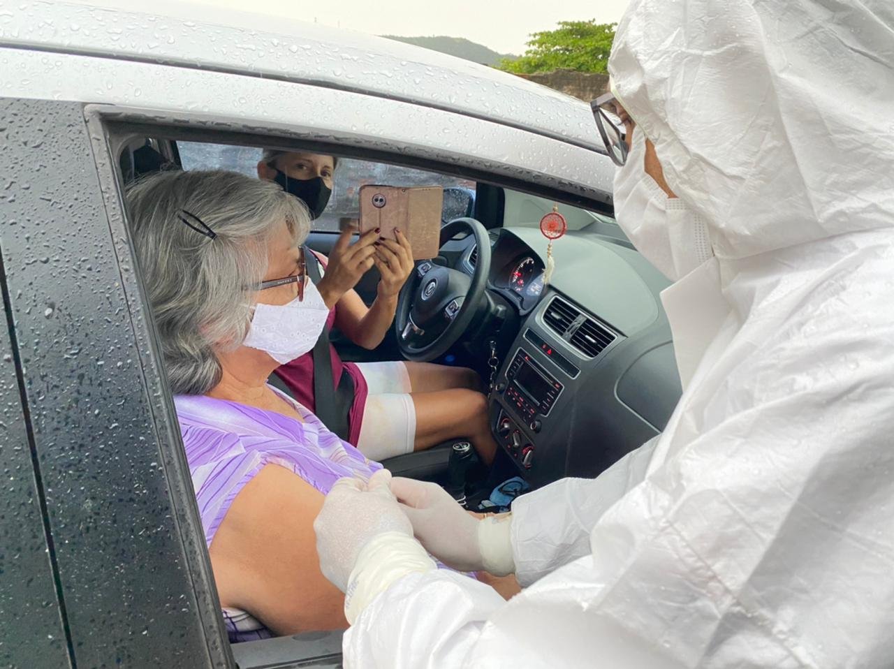 Cerca de 200 idosos, com 76 anos completos, foram vacinados nesta terça-feira (23), no drive-thru de combate a Covid-19, em Imbituba. A informação é da Secretaria Municipal de Saúde (Semusa)