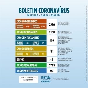 Mais duas mortes são registradas pela Covid-19 em Imbituba. Agora, o município soma 15 óbitos pelo novo coronavírus.