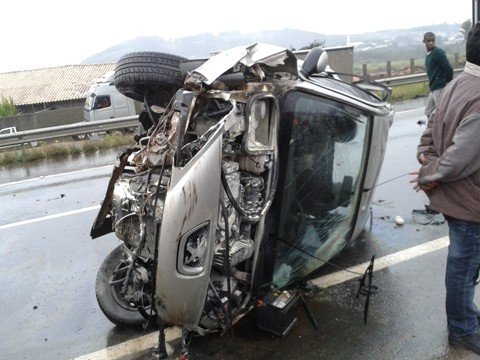 Colisão resulta em capotamento
