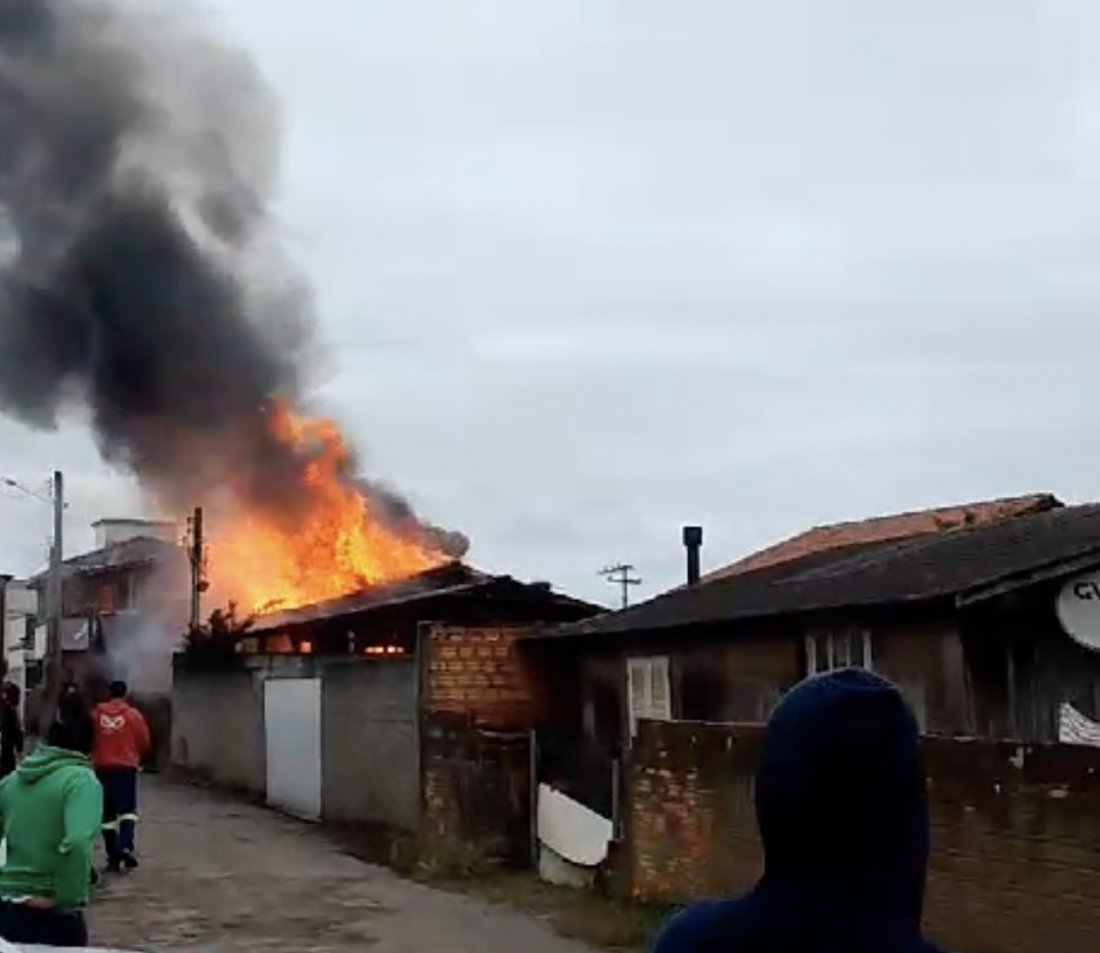 Um incêndio de grandes proporções devastou a casa de uma família em Imbituba nesta segunda-feira. O fogo destruiu completamente o imóvel, mas felizmente não houve feridos. O pai e o bebê conseguiram sair da residência quando as chamas começaram, e a mãe estava no trabalho.