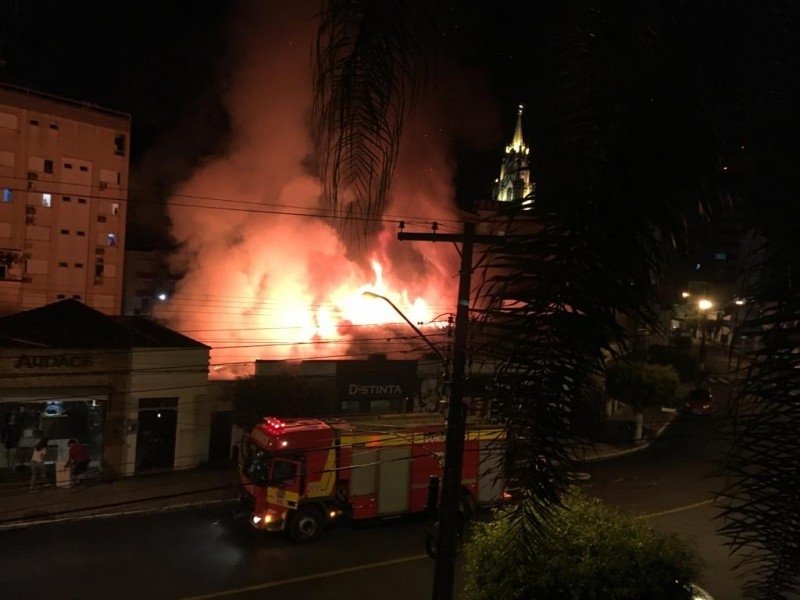 Um incêndio de grandes proporções destruiu, na madrugada desta sexta-feira (29), três lojas localizadas na Rua XV de Novembro, centro da cidade de Orleans. O fogo teria iniciado por volta de 2h15min, em um estabelecimento de assistência técnica de celulares.