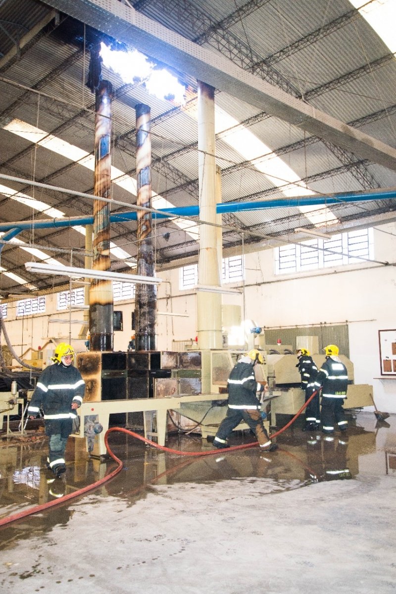 De acordo com os socorristas os funcionários faziam manutenção em uma máquina de pintura quando o motor travou, causou o superaquecimento e deu início ao incêndio.