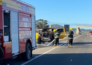 Um veículo foi atingido por um incêndio hoje (21) à tarde na BR-101 em Capivari de Baixo. O Corpo de Bombeiros Militar foi acionado por volta das 16h30 para atender a ocorrência.