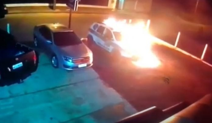 Quando vê um caminhão da empresa de recolhimento de lixo se aproximar, ele corre para a casa do lado e se esconde. Depois que o caminhão passa, ele se aproxima do carro, coloca fogo em alguma coisa e joga no carro, que incendeia completamente. De acordo com a PM, o proprietário da oficina relatou que estava em casa quando a vizinha informou que estava pegando fogo em um veículo no estabelecimento. Além da viatura, um carro Ford Fusion também foi atingido pelas chamas. O Corpo de Bombeiros foi acionado e utilizou cerca de 2,5 mil litros de água para combater as chamas e realizar o rescaldo.