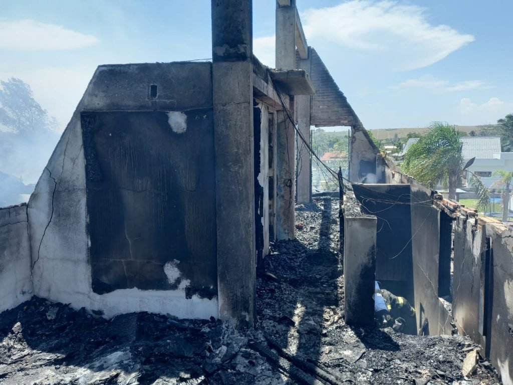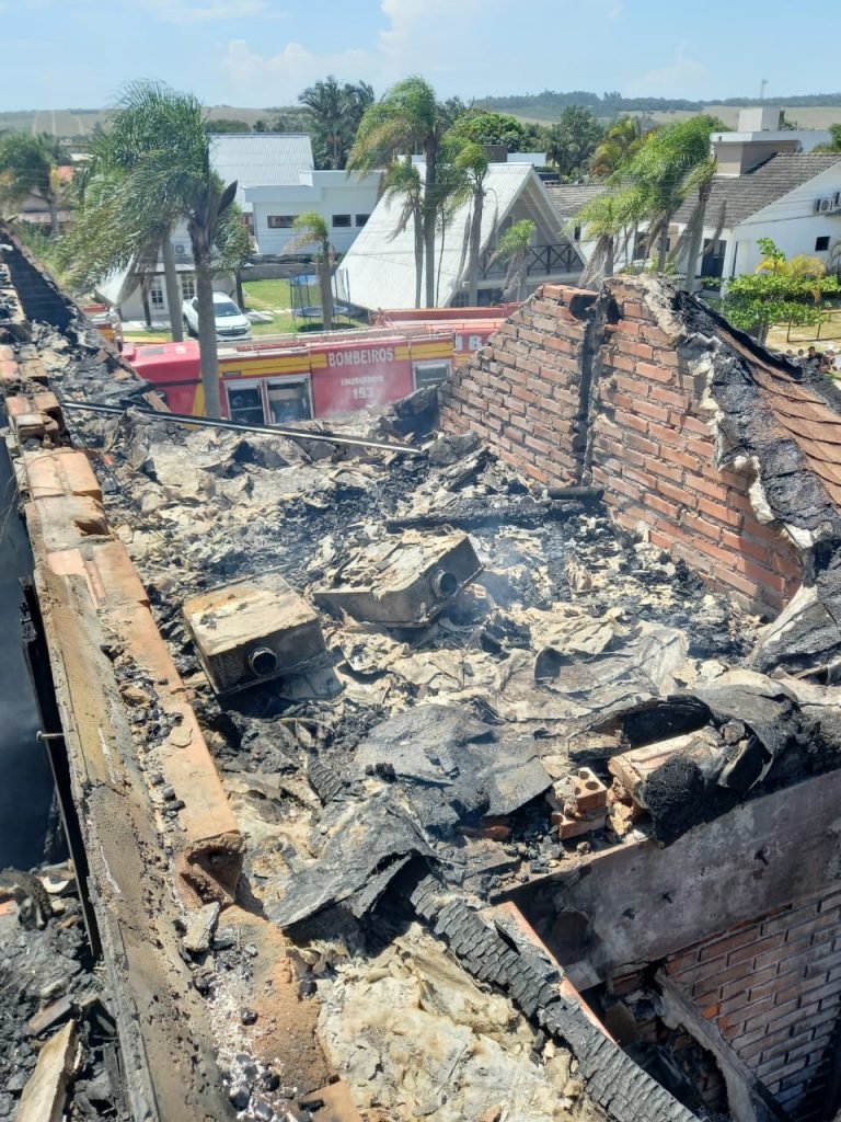 As guarnições dos Corpos de Bombeiros Militares de Balneário Rincão, Içara e Criciúma acabaram de exterminar o incêndio na casa de alto padrão no condomínio fechado Vila Suíça, no Balneário Rincão.