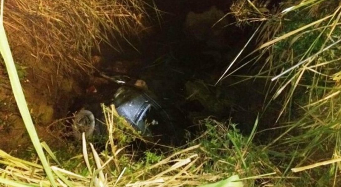 Um veículo Peugeot saiu da pista e caiu de um buraco de aproximadamente cinco metros de profundidade nas laterais da Rua Marechal Deodoro da Fonseca, no bairro Warnow, em Indaial.