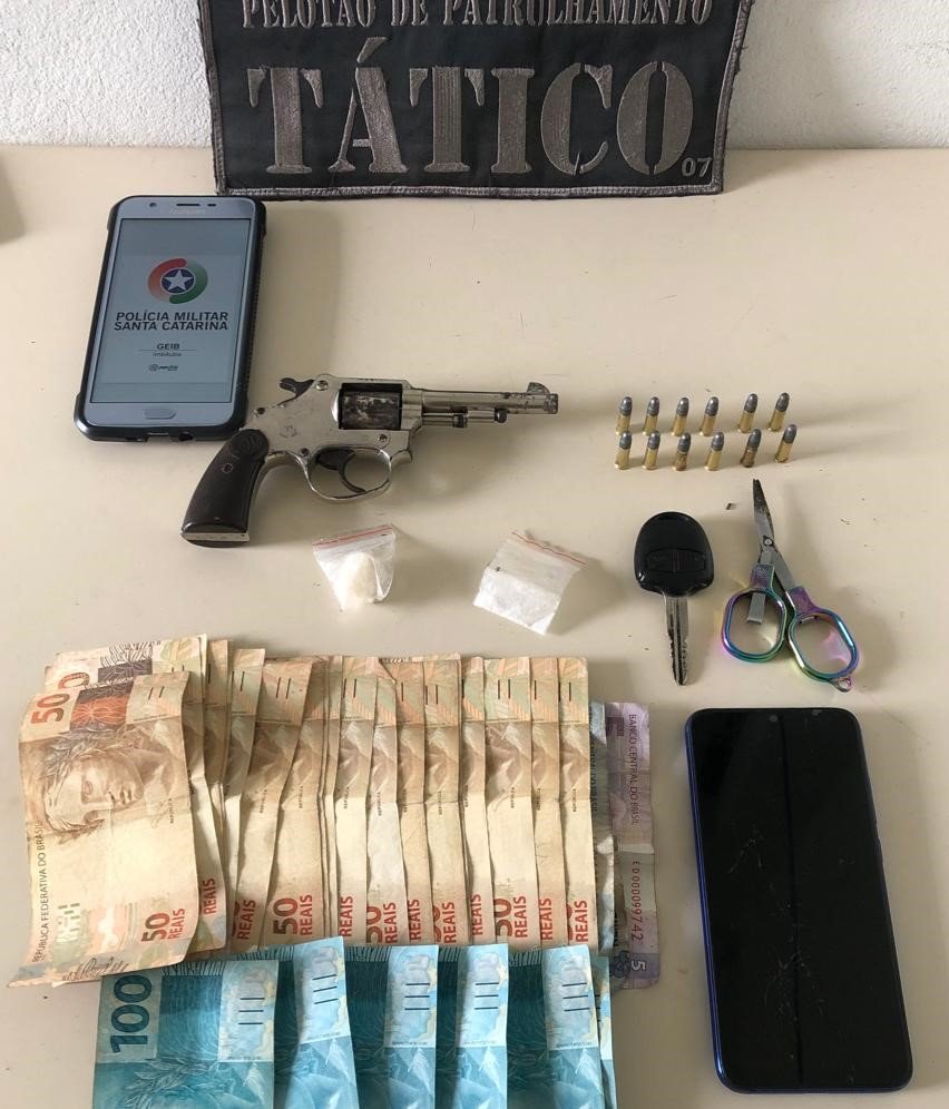 Um homem, de 31 anos, que portava drogas, uma quantidade em dinheiro e uma arma de fogo, foi preso hoje (30) pela Guarnição Especial da Polícia Militar de Imbituba por meio do Pelotão de Patrulhamento Tático (PPT). O flagrante ocorreu no limite entre a Praia do Rosa e Garopaba.