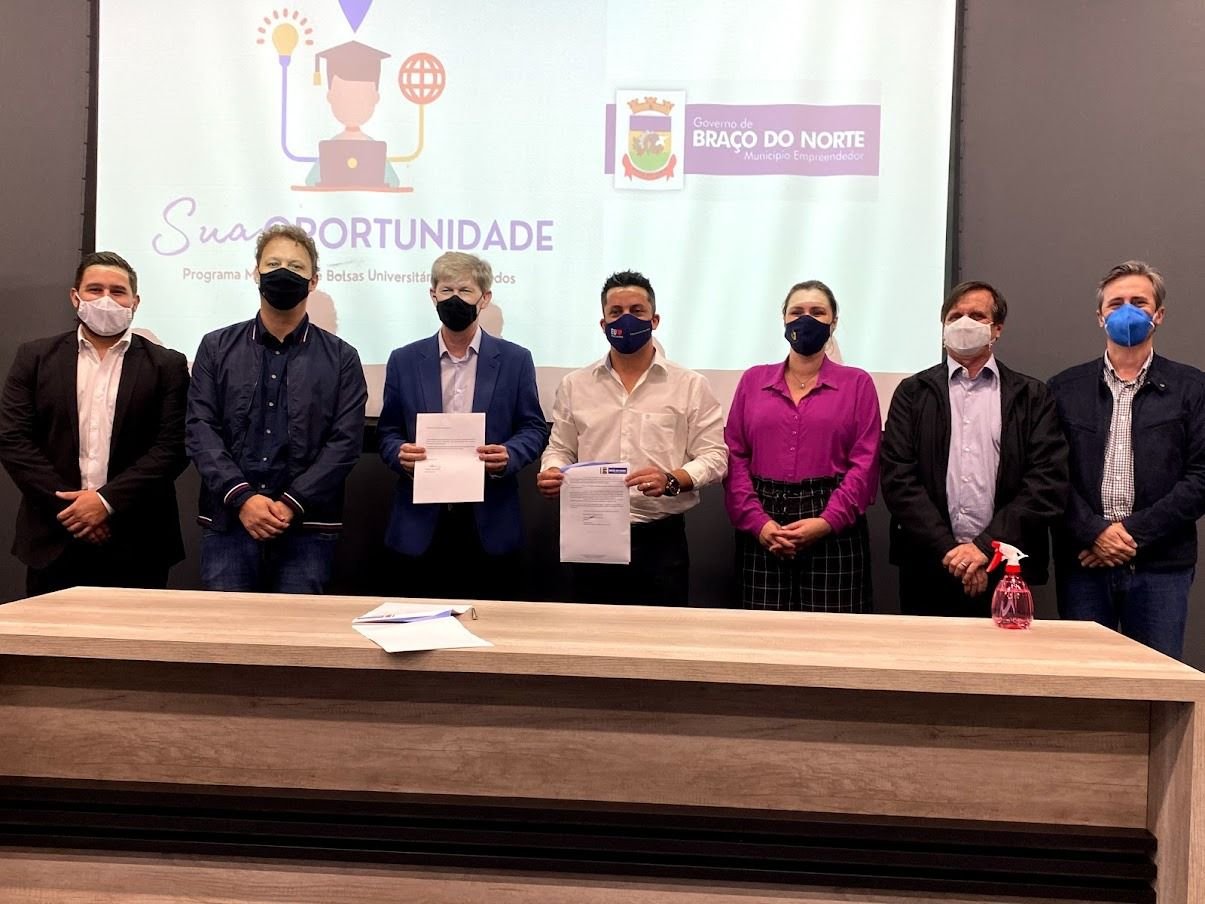 O sonho de cursar uma universidade está mais perto para 12 alunos de Braço do Norte. Estão abertas as inscrições para o Sua Oportunidade, programa de concessão de bolsas de estudos do município criado a partir da compensação tributária da Unisul com a prefeitura. Serão 12 vagas, no total, e os estudantes podem escolher entre os cursos de administração, ciências contábeis, direito, processos gerenciais e psicologia. Conforme o secretário de administração e fazenda (Seafaz) da prefeitura, Ramon Beza, o programa é válido para dois semestres e um conjunto de regras foi criado para dar transparência e responsabilizar os contemplados – confira mais no vídeo abaixo.