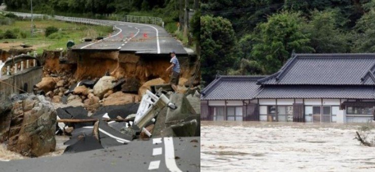 As autoridades do Japão contabilizam cerca de 60 mortes pelas inundações e deslizamentos de terra. As fortes chuvas iniciaram no sábado na ilha de Kyushu.
