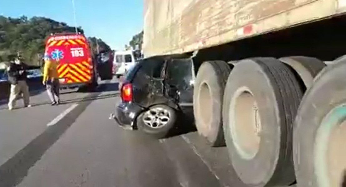 Um acidente envolvendo sete veículos na tarde deste domingo (26) interditou totalmente a BR-101, em Itapema. As batidas aconteceram no sentido Norte da rodovia. Um dos carros ficou embaixo de um caminhão.
