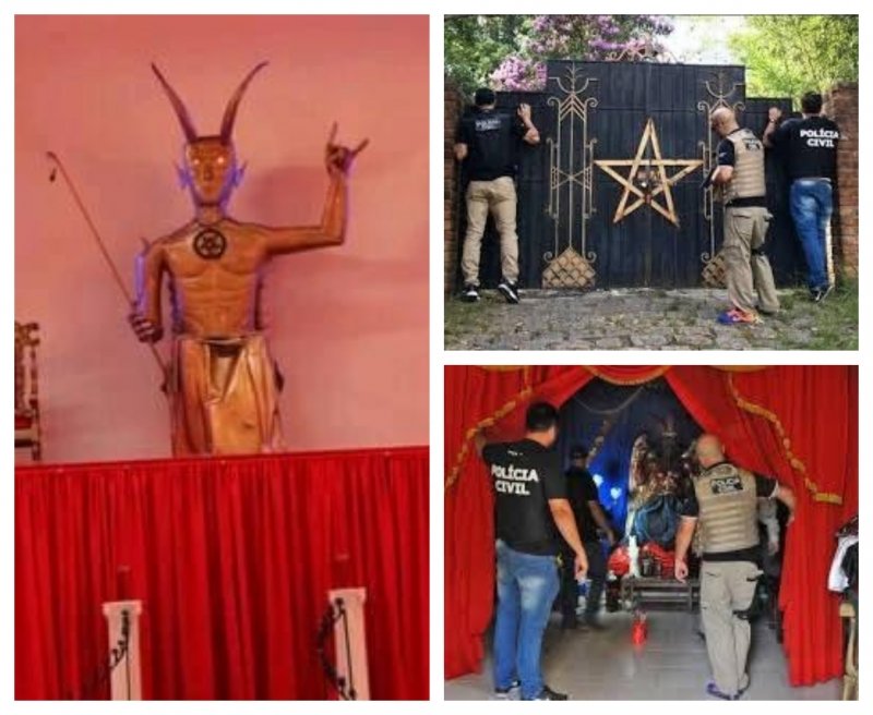 Então, parte da notícia que corre nas redes sociais é falsa, não há um ‘bruxo’ torturando e matando crianças e, Criciúma. Mas as imagens com os símbolos satânicos e os policiais são reais, o templo existe, o tal ‘bruxo’ existe, porém, confessou que nunca se envolveu em rituais de sacrifício humano . Não temos informação de onde é a criança que aparece machucada nas fotos.