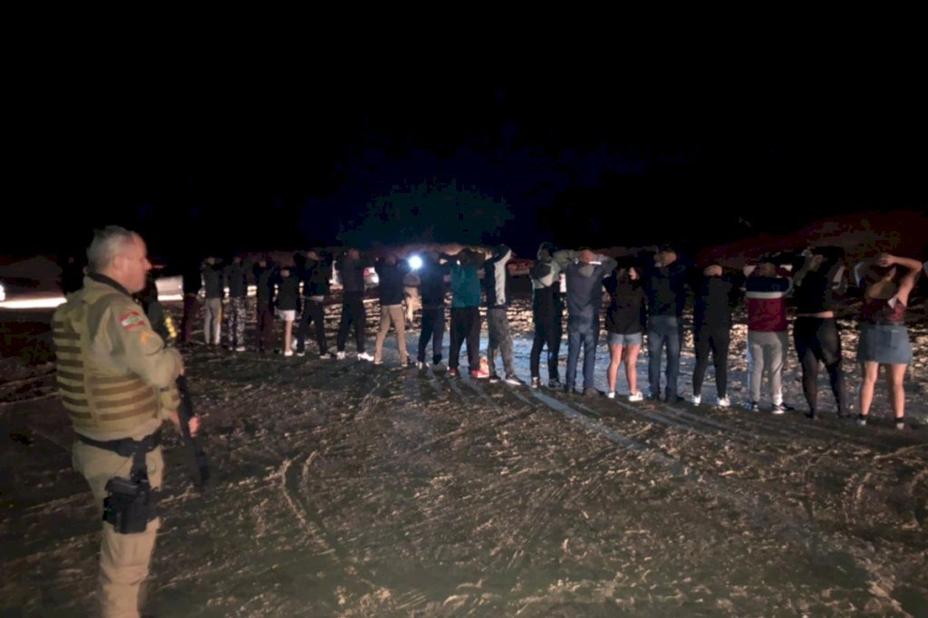 Na madrugada deste sábado, a guarnição flagrou uma festa clandestina com mais de 80 pessoas no Balneário Esplanada. O grupo estava descumprindo as regras impostas em decreto contra a Covid-19 causando aglomeração e sem fazer uso de máscara.