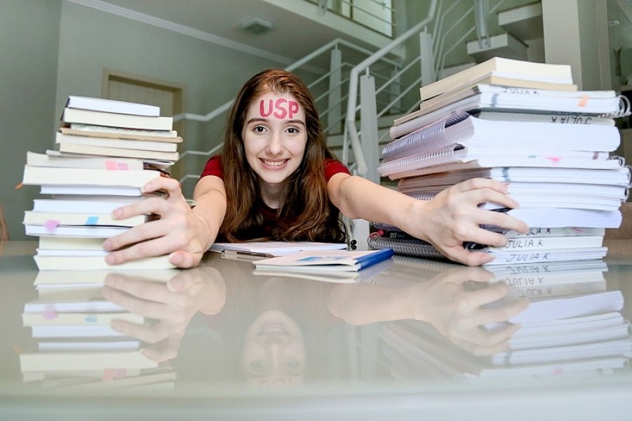 Julia sempre foi ótima aluna e tirou boas notas na escola. Mas a pouca idade espanta: a jovem terminou o ensino médio com apenas 16 anos e conseguiu vaga em um dos cursos mais concorridos do país – foram 135,7 candidatos por vaga no vestibular 2018 da USP – na primeira tentativa.