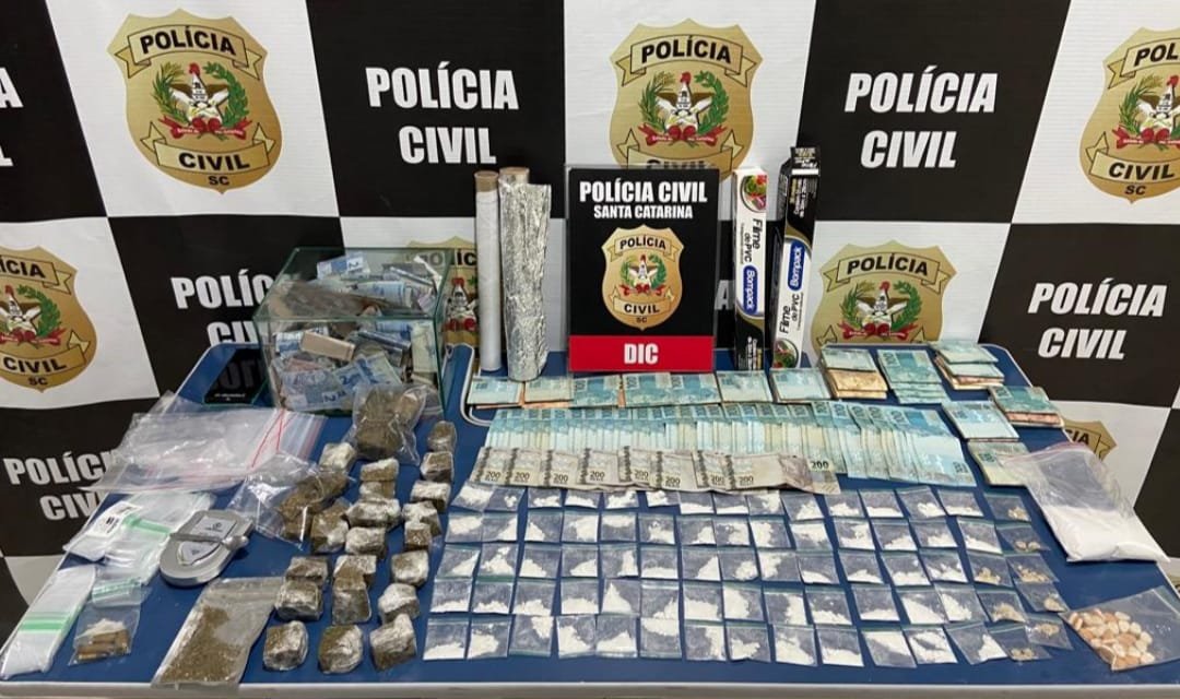 Policiais civis da Divisão de Investigação Criminal (DIC) de Tubarão cumpriram, na manhã desta terça-feira (3), um mandado de busca e apreensão na residência de um suspeito de tráfico de drogas. As investigações iniciaram há alguns meses e ele foi identificado. No apartamento do acusado, no bairro Dehon, foram foi localizado maconha, cocaína, ecstasy, MDMA, mais de R$ 30 mil em dinheiro e algumas munições. O rapaz, de 21 anos, foi autuado em flagrante por tráfico de drogas e posse de munição de uso permitido. Após os procedimentos legais, ele foi encaminhado para o presídio Regional de Tubarão, onde permanecerá à disposição da Justiça.