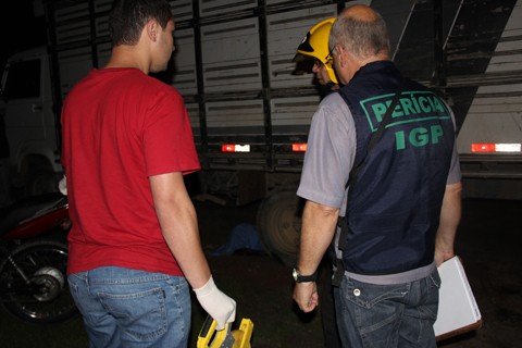 Com o forte impacto, os dois foram arrastados e ficaram embaixo do caminhão. O homem morreu na hora e ficou preso embaixo de uma das rodas.