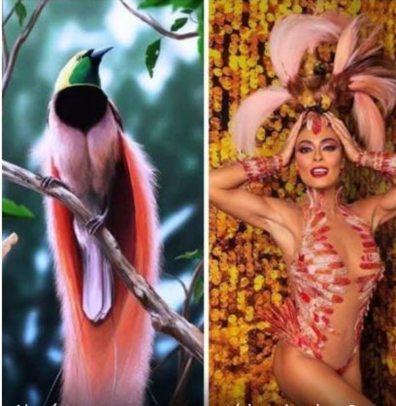 Além disso, Juliana revelou como a peça foi criada. “Usei neste Carnaval uma réplica da ave do paraíso com materiais reformados que entrariam em descarte não fosse a recuperação… E todas as penas foram recicladas de acervos de anos anteriores e reutilizadas com nova coloração”, explicou.